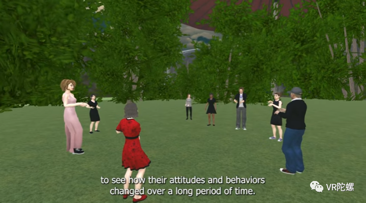 在另一个实验中,学生们以自我虚拟化身(类似于学生在真实世界中的实际外表)或通用虚拟化身(看起来和穿着都一样)的身份进行虚拟互动。研究人员观察了学生们在VR中的行为,学生们报告了他们的感受,如群体凝聚力、存在感、享受和现实感。