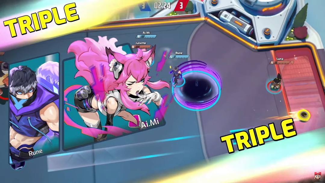 本作是一款免费的3v3淘汰进球游戏,选择你的角色,用冲击性的技能将对手击出场外,在瞬息万变的混战中进球得分。