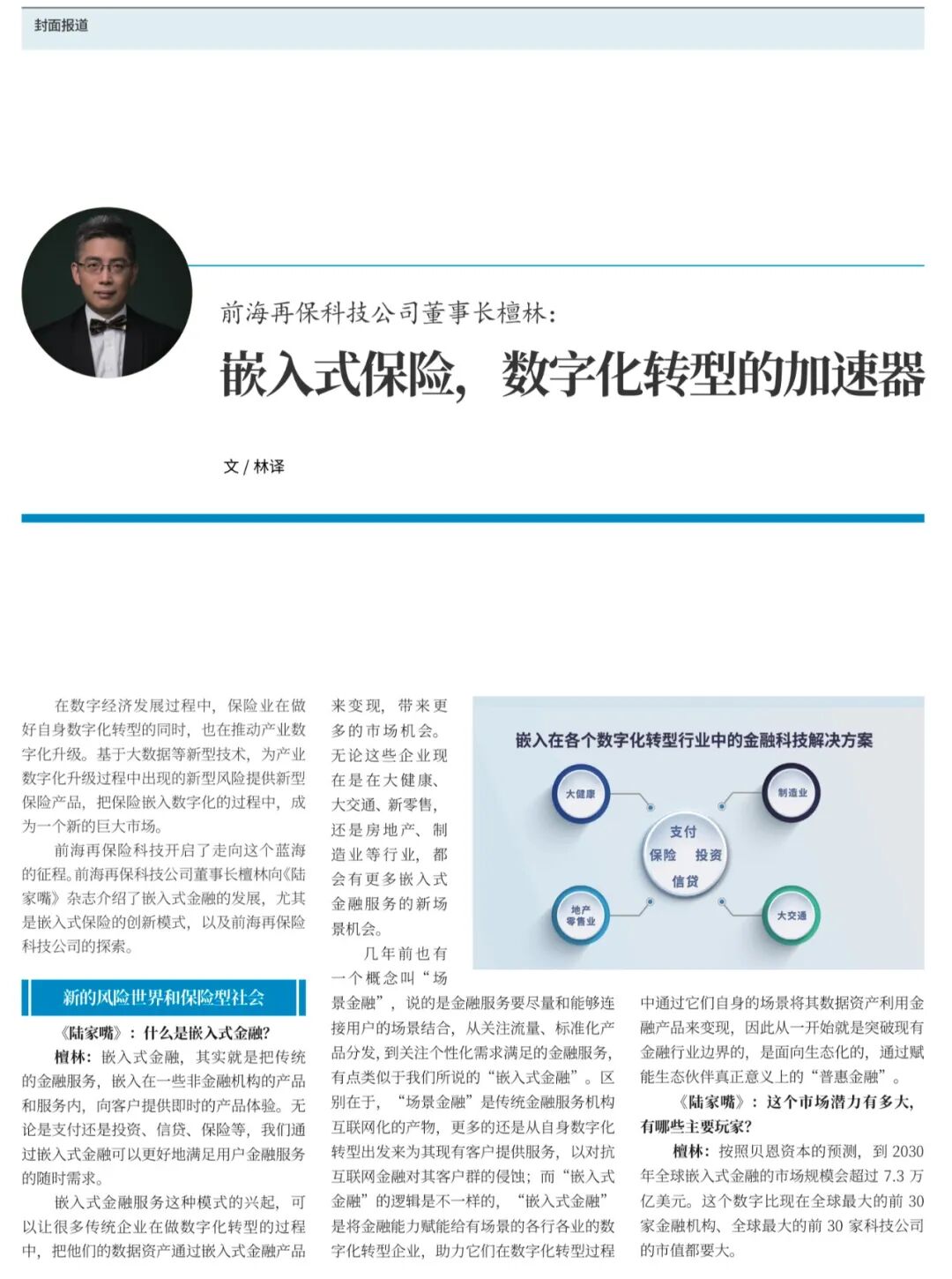 《陆家嘴》:前海再保险科技公司做嵌入式保险,有什么新的特点,进展如何?