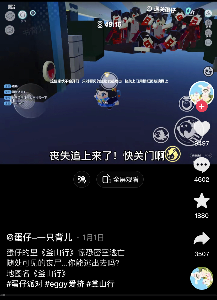 从跳伞变成了直接着陆,靠道具火箭筒淘汰队友的蛋仔吃鸡,用组件拼接出的形象怪诞的僵尸,在蛋仔中上演氛围不太行的《生化危机》《釜山行》。