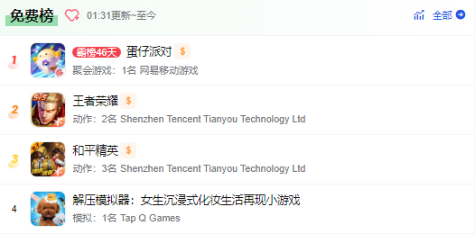 对偏向重度游戏和主机游戏的玩家来说,《蛋仔派对》可能是一个上线大半年来从未出现在过他们视野中的名字。直到春节期间,它突然在各大移动游戏榜单上异军突起,以绝对的黑马姿态,开始与《王者荣耀》《原神》等各大传统“幻神”角力。