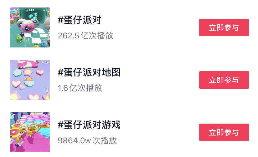 《蛋仔》的社交媒体数据异常出众,小红书笔记百万篇,短视频网站话题点击量高达百亿。而进入其中不难发现,其中最显著,点击量高的内容,几乎都来自各种玩家在游戏中的自创内容。