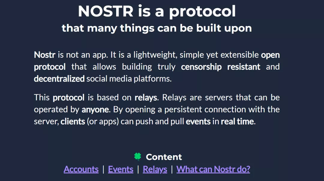 因此,Nostr 对于单一节点不具有依赖性,虽然并不是建立的区块链上,Nostr 依旧用自己的方式实现了去中心化。