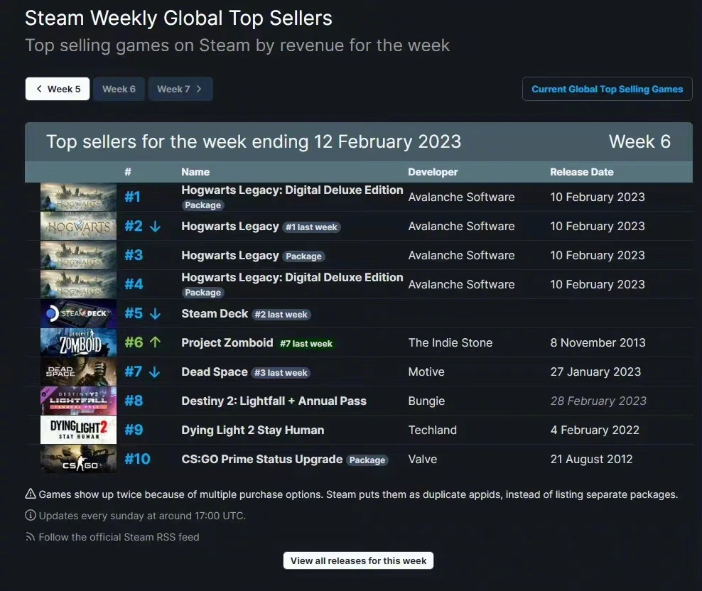 该游更是在连续几周上榜Steam畅销Top10后,于上周(2月6日-2月12日)包揽了畅销榜单前四的位置。