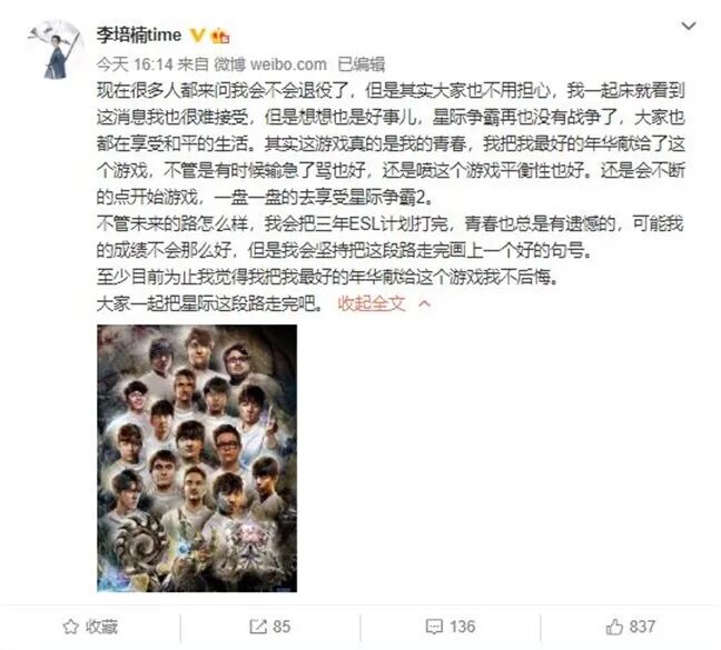 而仅仅在四天后,这位成绩越来越好的职业选手,却迎接到了《星际争霸2》停更新内容的公告,他一度懵到发微博吐槽“这都啥啊”。