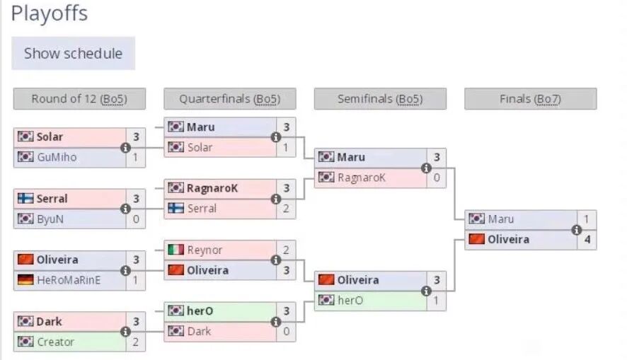 从八强赛开始,几乎所有选手都代表着《星际争霸2》玩家的最强实力,李培楠在八强赛完成传奇的让二追三,在四强赛三比一击败世界第一神族玩家herO,在决赛首次的人族内战中,李培楠更是四比一碾压了世界第一人族玩家Maru,拿到中国“星际争霸”职业选手的第一个世界冠军。