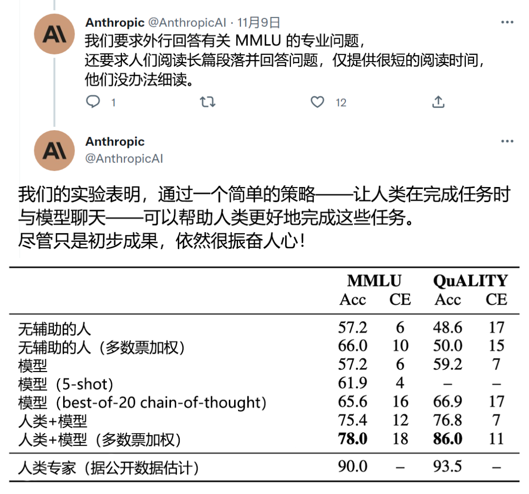 虽然这只是两个个例,但它们似乎表明了新一代生成式 AI 应用的普遍运作方式。生成式 AI 非常擅长知识型工作的价值链的某些部分,但与人类的思维方式非常不同。Anthropic 是一家专注于认识 AI 工作原理的公司,它发现,与 AI 或人类单独工作相比,人类与专业的 AI 助手并肩作战、执行各种任务时,表现会更加出色: