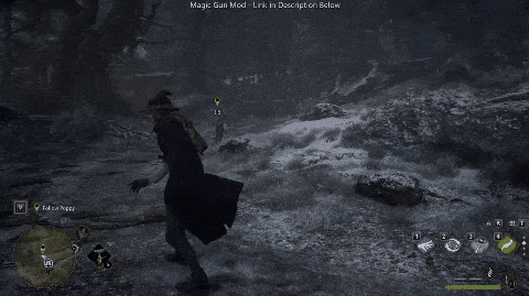 这个“魔法枪”模组由一位网名叫做ATOMdotEXE的玩家上传,可在Nexusmods网站上下载。模组只是简单的模型替换,做得也比较仓促和简陋。主角在攻击时,并没有把食指扣在扳机上,而且还是像甩动魔杖那样甩动手枪,宛如某种枪斗术。