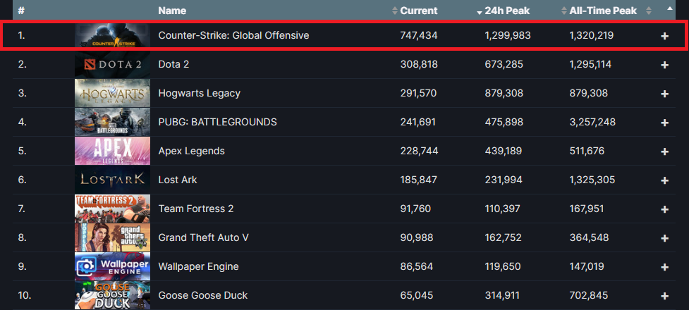 据外媒PCGamer的报道和SteamDB网站的数据,在2月11日的某个时间点,共有1320219位玩家打开了CS:GO,打破了这部游戏在线人数峰值的记录。
