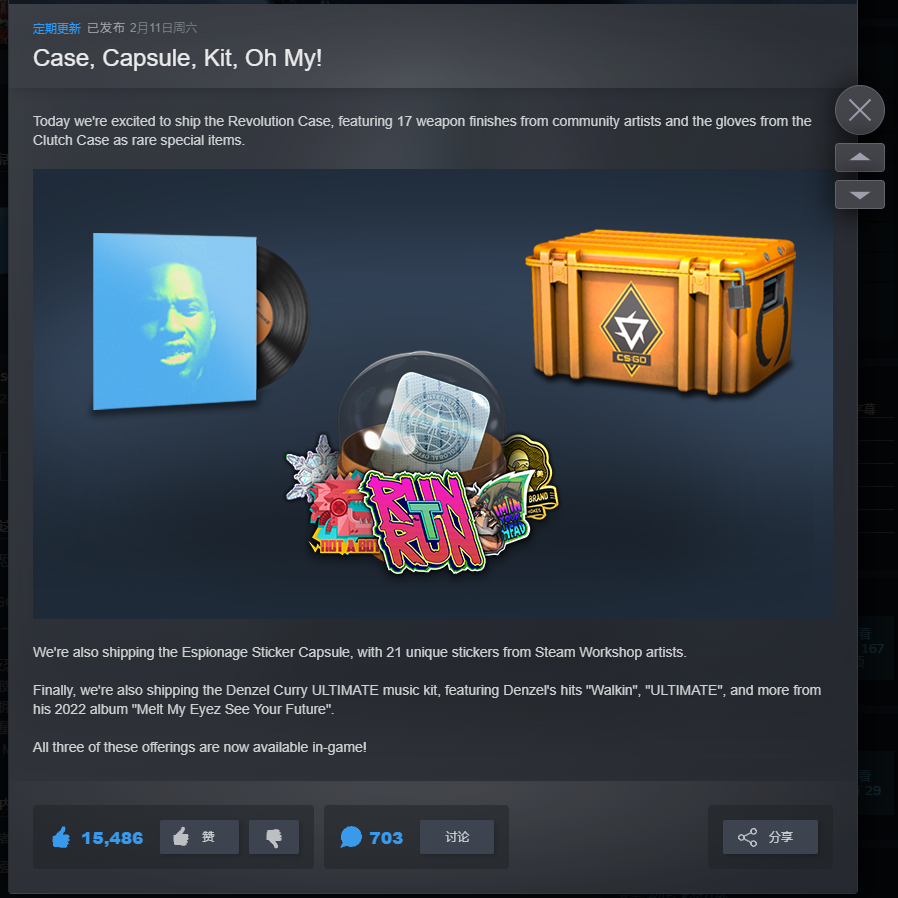 但更有可能的是,V社于2月11日推出了新的战利品箱子和相关活动。由于涉及真实金钱交易,CS:GO玩家对装饰品的追求要更疯狂一些,大批玩家陆续回坑,恐怕仅是为了收集和倒卖箱子及里面的饰品。