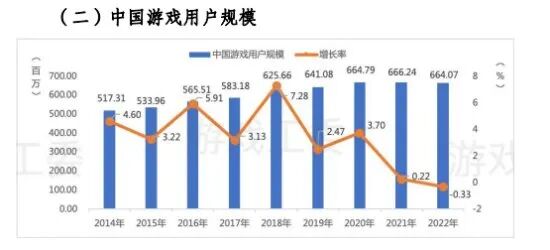 -中国游戏用户规模约6.64亿,同比下降0.33%,继2021年规模增长明显放缓之后,又出现过去八年来的首次下降,表明产业发展已进入存量市场时代。