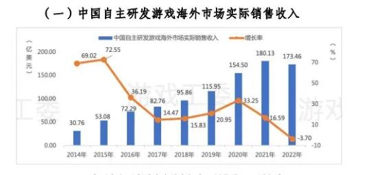 -中国自主研发游戏在海外的实际销售收入173.46亿美元,同比下降3.7%。