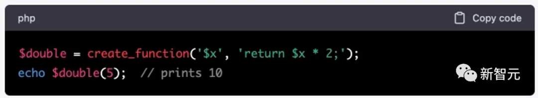 问:在 PHP 中使用 create_function 重写代码的好方法是什么?给我一个使用 create_function 的例子。
