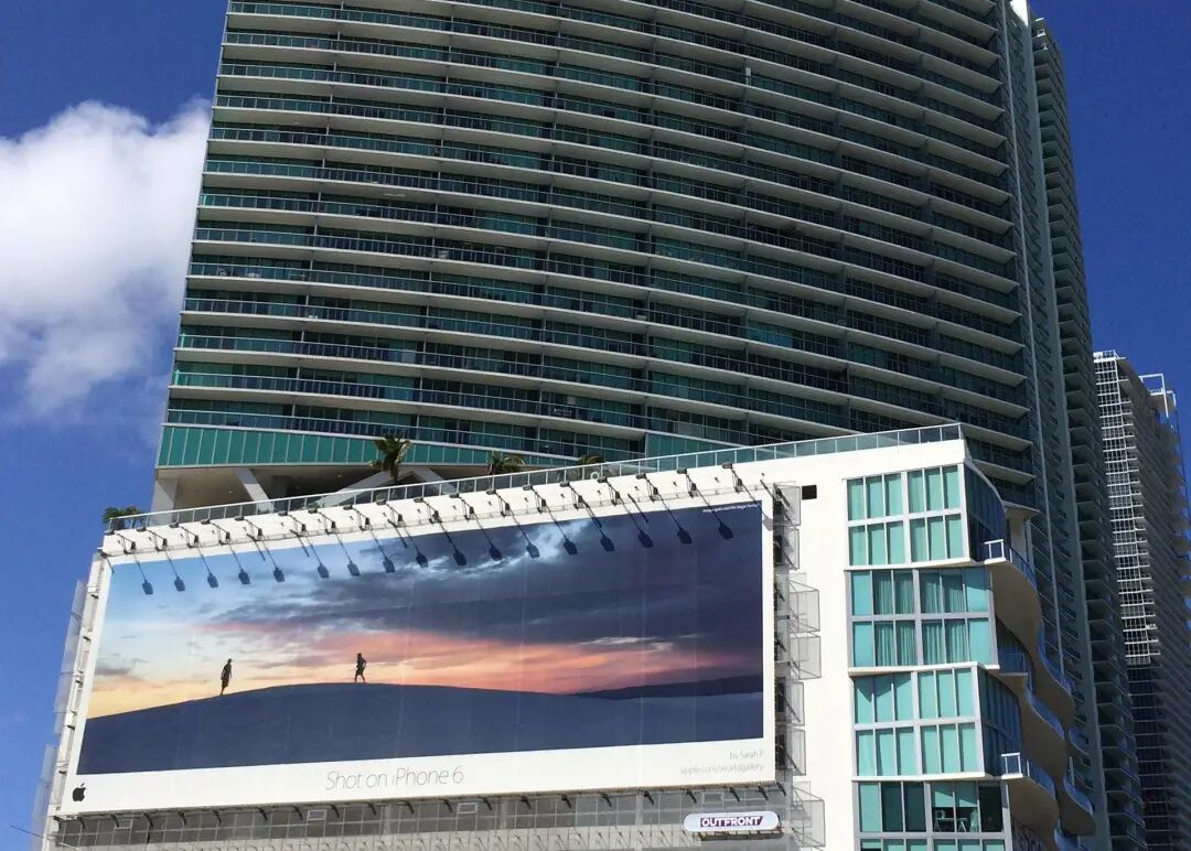 巨大的户外广告牌天然放大了图片信息,和建筑一起,组成了一道独特的风景线,正如苹果营销传播副总裁 Tor Myhren 接受媒体 ADWEEK 采访时所说的: