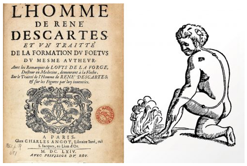 图 1:描绘哲学家勒内·笛卡尔设想中热量如何向大脑发送机械信号的插图。