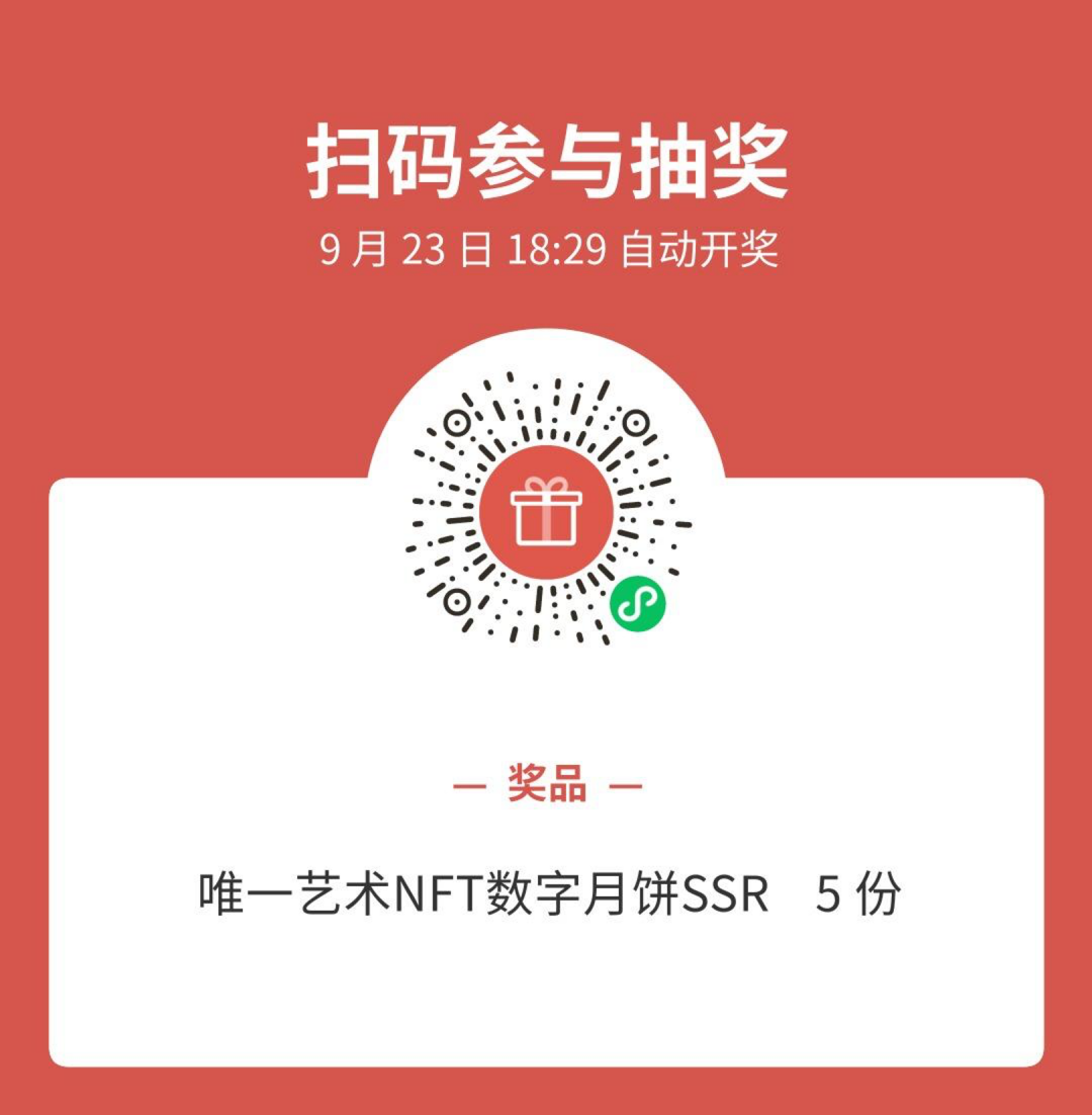 线报大大打算宠粉一波,把团队此次在唯一艺术平台获得的5个NFT星耀月饼SSR全部以抽奖的模式赠送给粉丝哦!粉丝扫描下方的码即可参加抽奖活动哦!