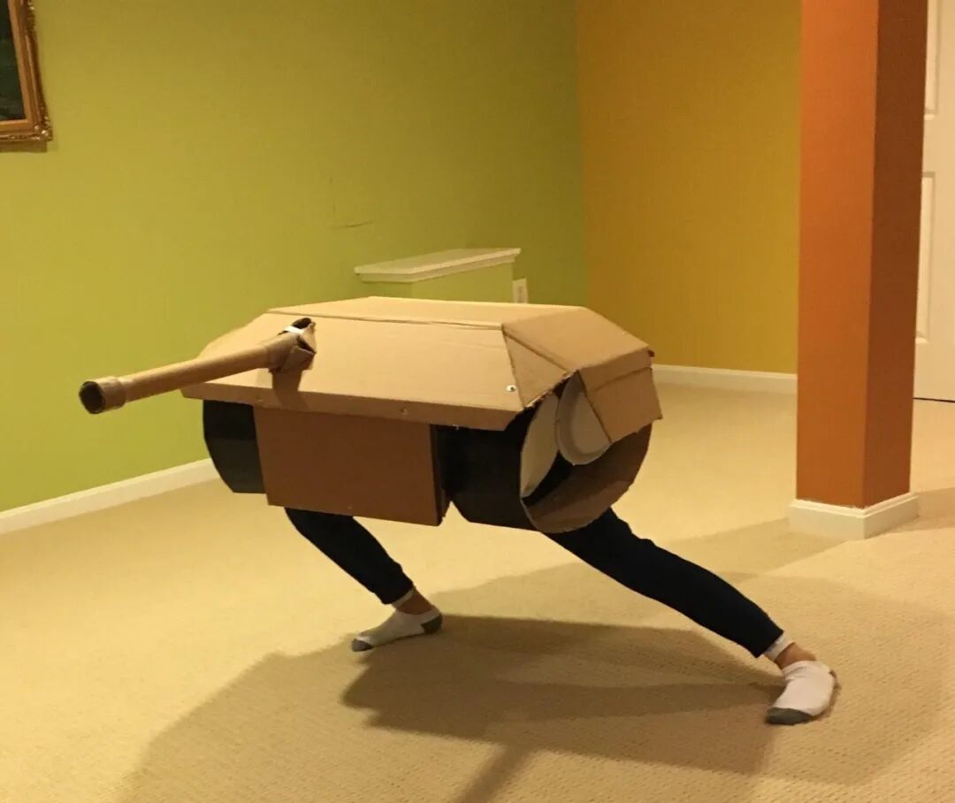 至少应该是下图这种像模像样的感觉,苏联经典款坦克KV-2炮塔下长了两条腿。但很可惜,你如果在网上看到这样的怪东西,往往都是愚人节P图。