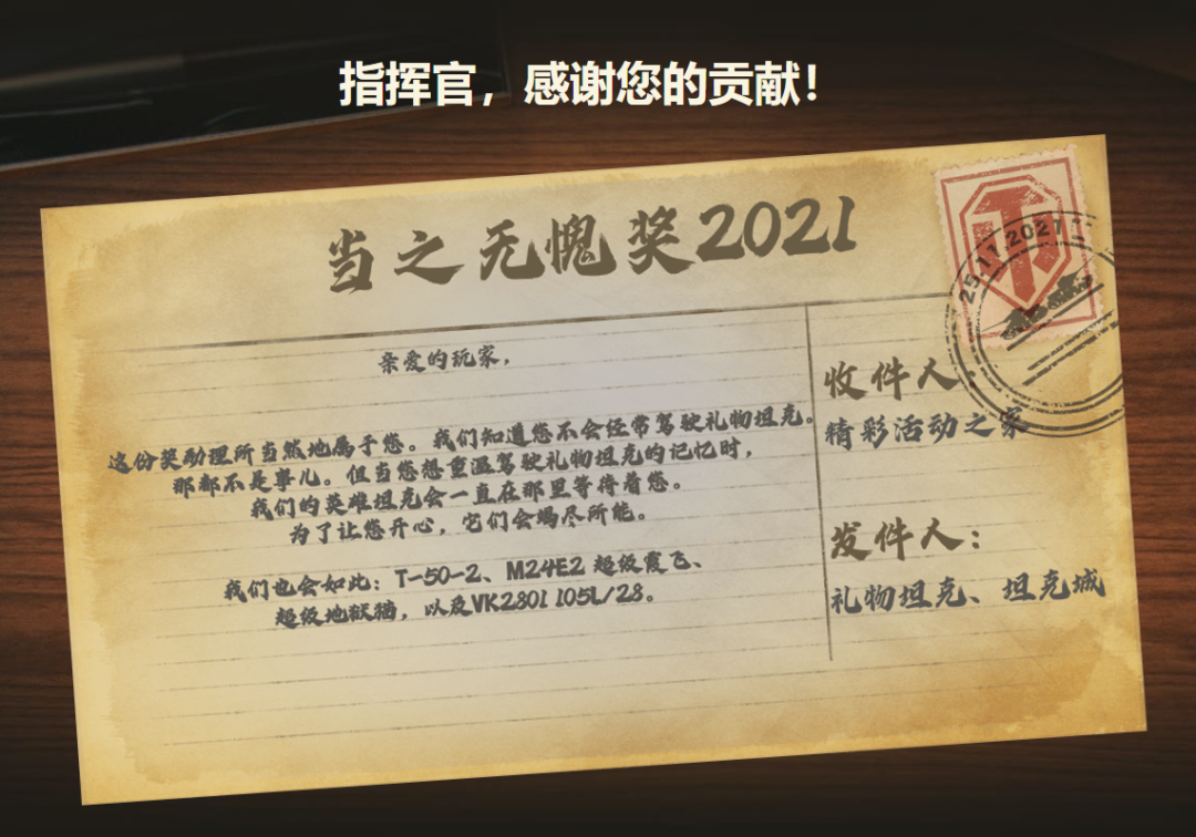 而对于喜欢坦克、喜欢了《坦克世界》游戏许多年的玩家,官方也将颁发每年一度的“当之无愧”奖。