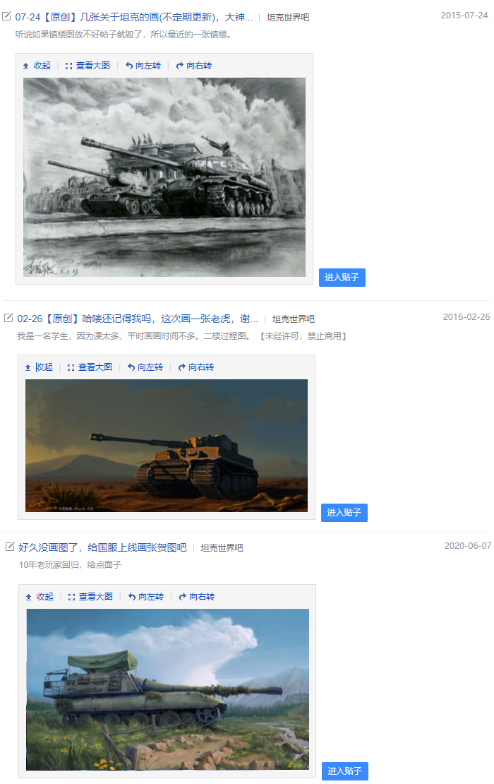 也有《坦克世界》玩家从学生时代起,一直以坦克为题材进行美术创作,画工也在肉眼可见地进步。