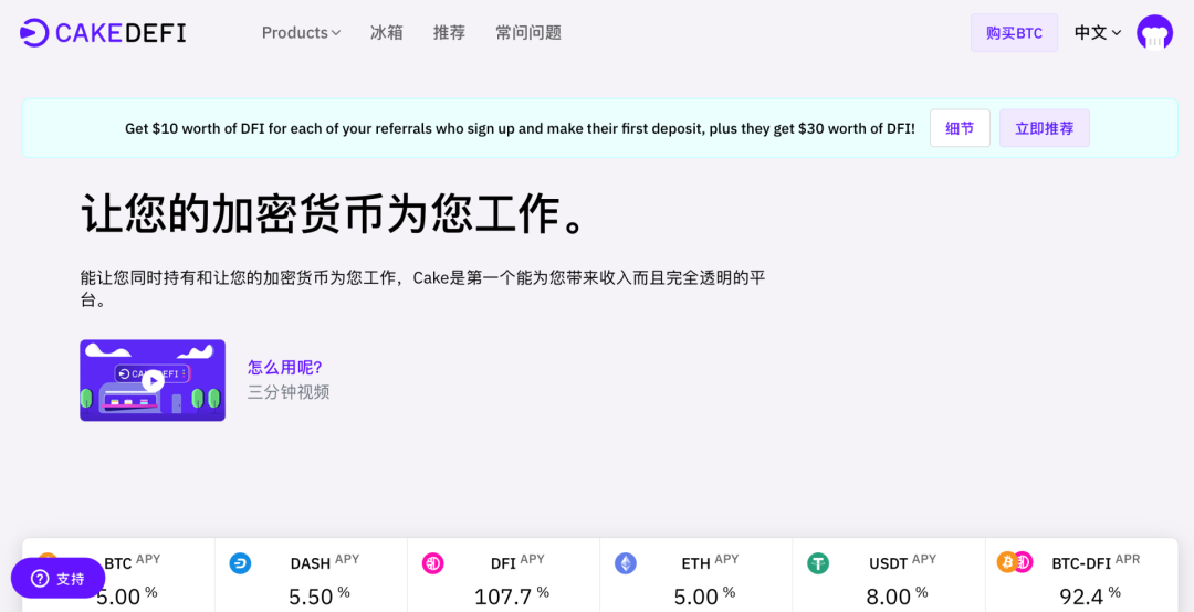 据悉,目前新用户在Cake DeFi存入价值50美元的加密资产,就可以获得额外价值20美元的 DFI奖励,DFI可以直接参与Staking服务进行质押生息。