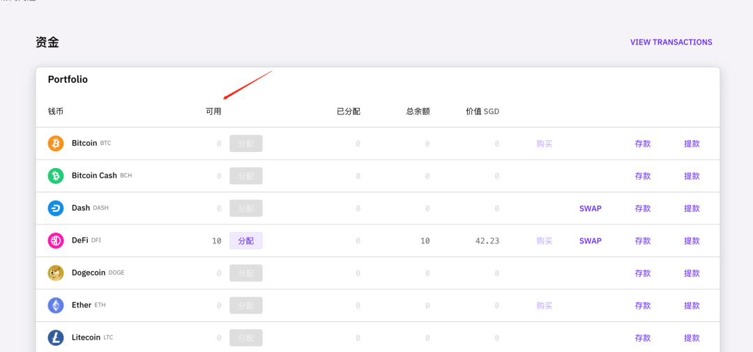 3、单击“购买”按钮后相关信息将会同步至BANXA、Transak,所购买的数字货币也会自动记入用户的CakeDeFi钱包,并在帐户中的“可用”列中显示。