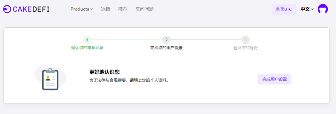 1、新用户可直接前往cakedefi.cn中文官网注册Cake DeFi平台帐号,完成KYC身份验证。