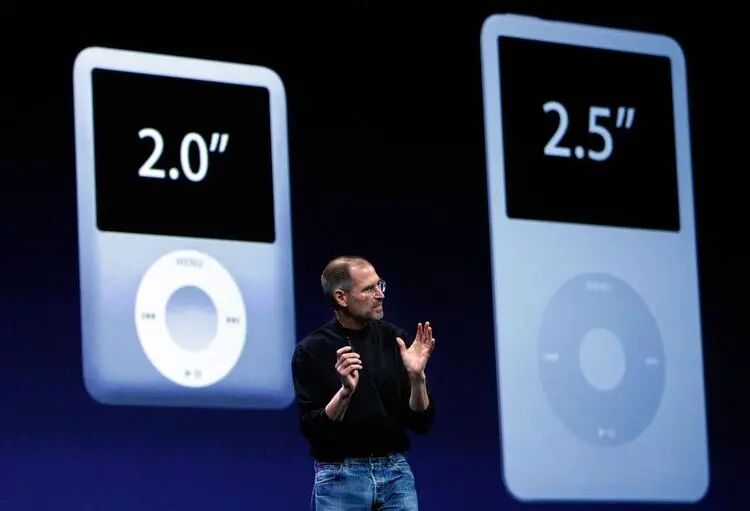 通过音乐软件iTunes的加持以及领先的存储和操控体验,iPod直接改变了用户的移动听歌习惯,经过几次迭代,iPod兼容了Windows系统、增加了触摸滚轮,到2004年,苹果iPod在同类市场的占有率超过了50%。![]()