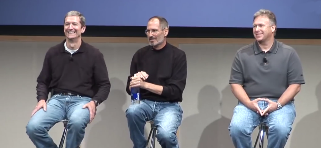 ▲从左至右:蒂姆·库克、史蒂夫·乔布斯、菲尔·席勒