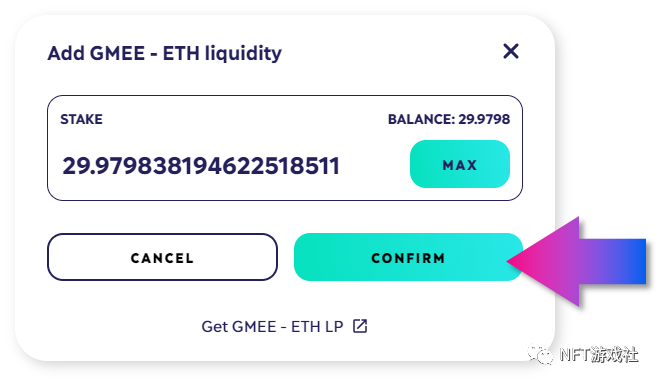 1. 首先,如果玩家没有任何ETH/GMEE LP代币,就需要先前往获取(这里可以了解如何获取GMEE代币)