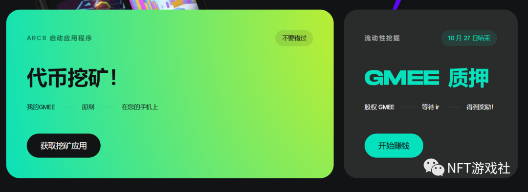 Arc8的前6周(截止时间到2021年10月19日),玩家将有机会获得GMEE代币,同时等待全面发布,并通过邀请朋友来增加奖励。这将采取网络应用程序的形式,为用户提供,在启动时能够使用GMEE。