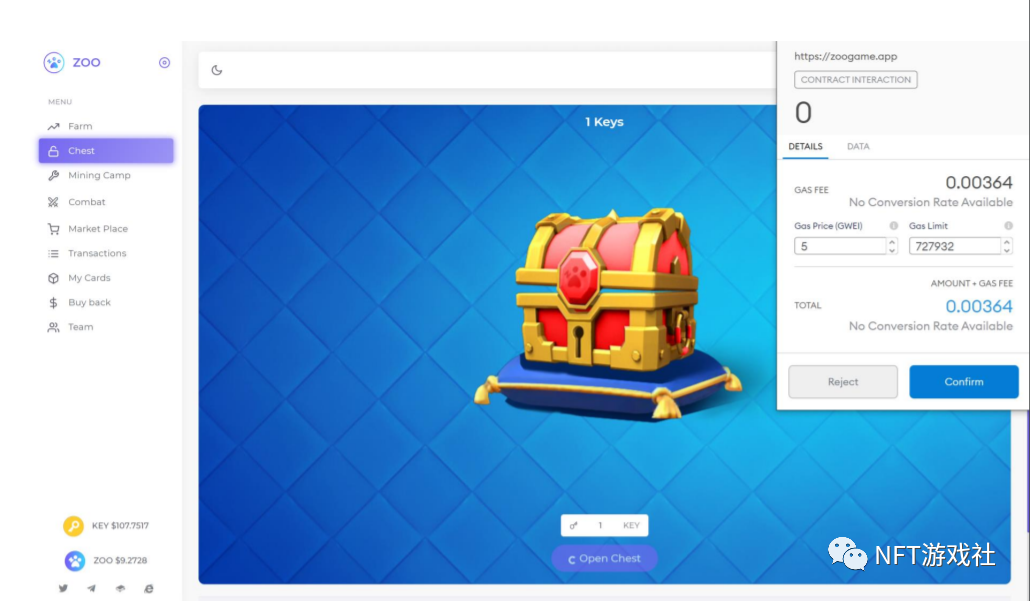 当你通过以下方式获得NFT时,打开箱子,它们会根据分配机制自动抵押并获得zoo。