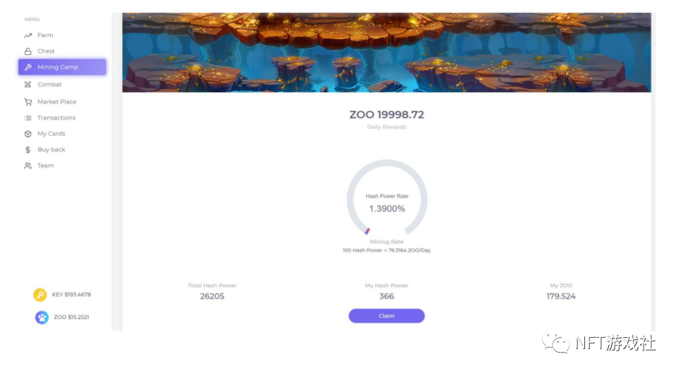 1.在挖矿营挖矿通过NFT获得,每个 NFT 都有自己的算力分配机制。