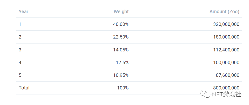 ZOO Token Emission 通胀机制: