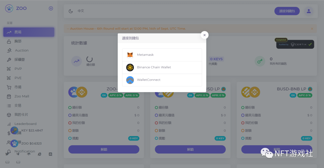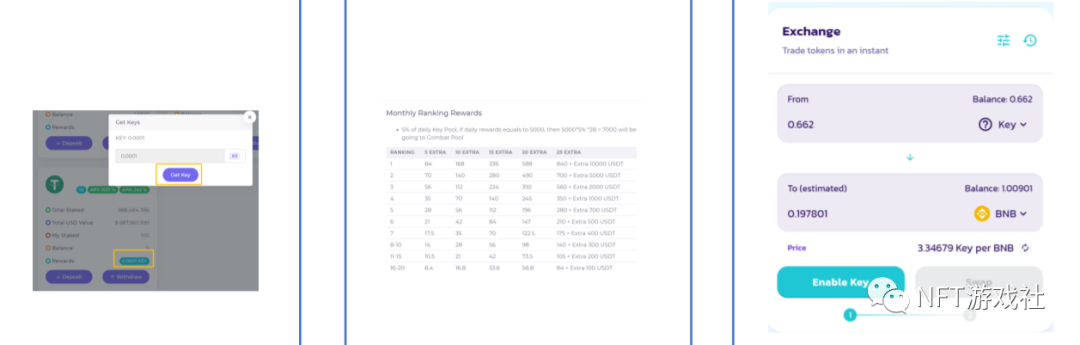 玩家可以通过质押自己BSC资产获得key代币。由zoo平台发行。该团队最初以AMM(Pancake)提供流动性,玩家可以通过key-USDT对在AMM(Pancake)中进行交易。