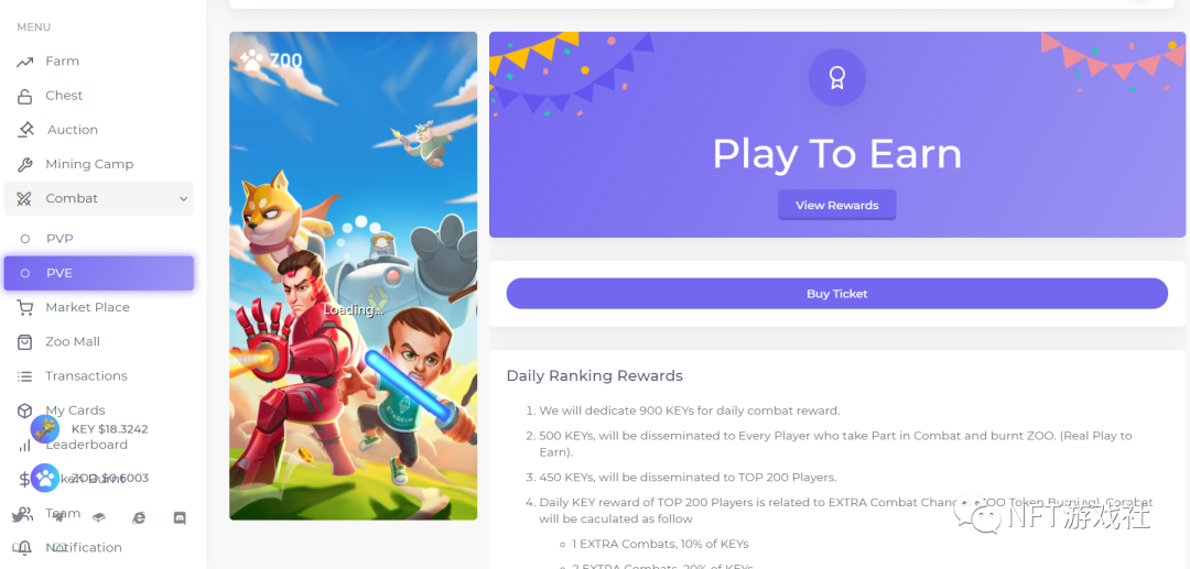 2.可作为劵使用参加有趣的游戏,并获得奖励,奖励包括key、zoo、NFT、
