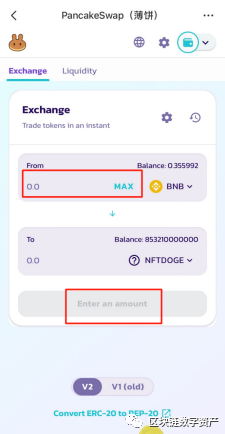 TP钱包里有了BNB后,就可以在TP上购买NFTDOGE了。