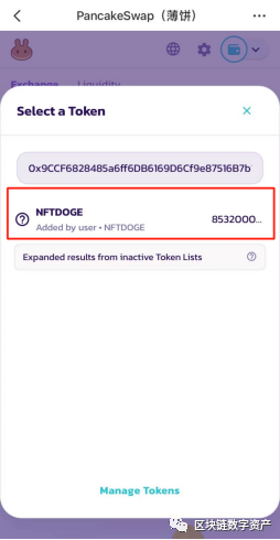2、选择NFTDOGE,或者粘贴NFTDOGE的合约地址,点击确认【Import】