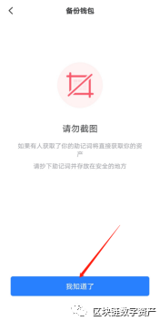 注意:一定要记好助记词并且妥善保存(手机截图、拍照、抄写等),“助记词”非常重要!因为钱包是去中心化的,一旦丢失“助记词”会导致以后找不到钱包或被黑客攻击的可能性,所以一定要重视!这段话请读3遍。