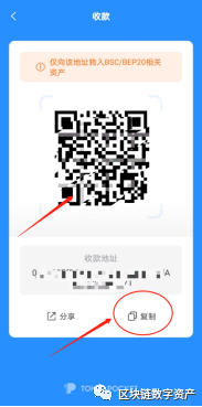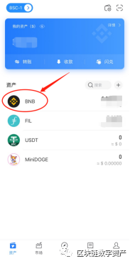 打开BNB钱包,获取收币地址(点击资产,点击BNB点击收款,然后复制你钱包地址)