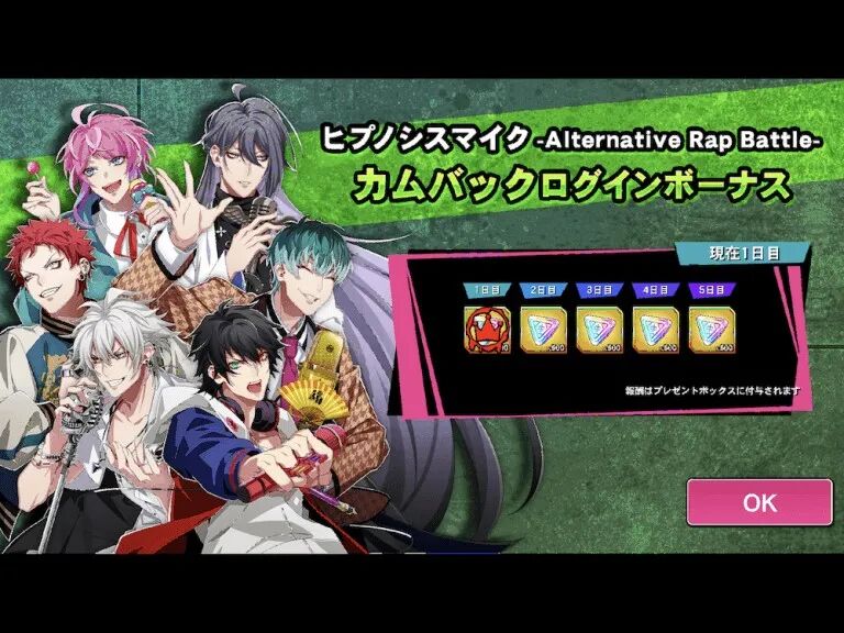 日本音舞游戏《Hypnosis Mic Alternative Rap Battle》为回归玩家连续五天每天提供500付费货币