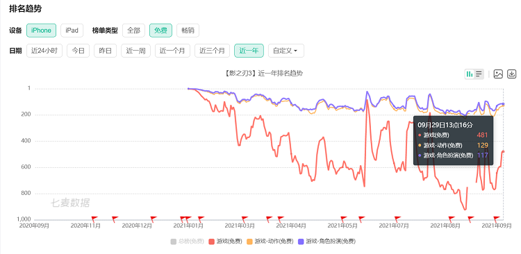 今年年初,灵游坊上线了武侠动作手游《影之刃3》,由英雄互娱代理发行。游戏上线时一度稳居iOS免费榜前五,畅销榜前十。随着游戏热度退却,目前排名在iOS免费榜300左右。