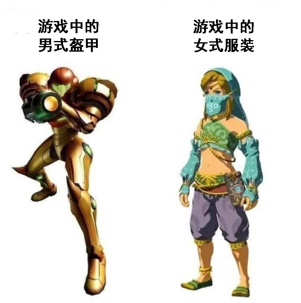 游戏中往往有一些角色会在特定场景或剧情中身穿异性服装,而其中也不乏女装林克这样的经典形象。reddit用户jamesswazz发布了一张趣图,分别展示了“游戏中的男式盔甲”和“游戏中的女式服装”。虽说萨姆斯的装甲是男式很勉强,但这身装扮也确实隐藏了萨姆斯本身性感的女人味;而女装林克想必大家都很熟悉了,虽说除了不救公主外林克还是很有男性魅力的,不过女装林克也让很多玩家大呼可爱。