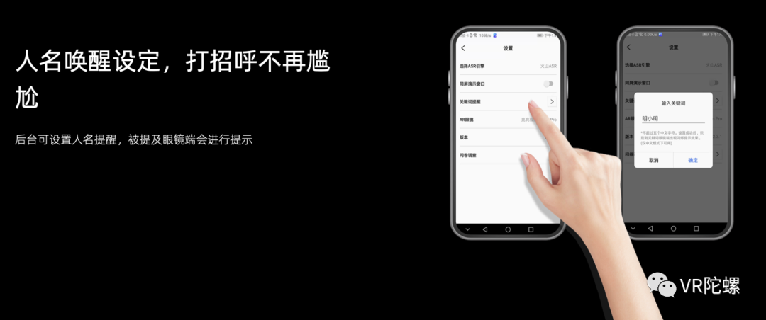 其一,文字转译效果和观看效果尤为重要。在保障语音翻译足够准确、实时,字体观看效果足够清晰的前提下,AR助听眼镜对文字选择、字体大小、显示位置做了充分调研,让听障人士观看无压力;其二,环境太吵杂听不清、有人呼唤他却不知道,这该怎么办?AR助听眼镜应用环境音智能识别、人名唤醒等技术,眼镜只要听到他的名字就能给出提示,听障人士在医院、民政窗口等公共场所可以更方便的办事。![]()