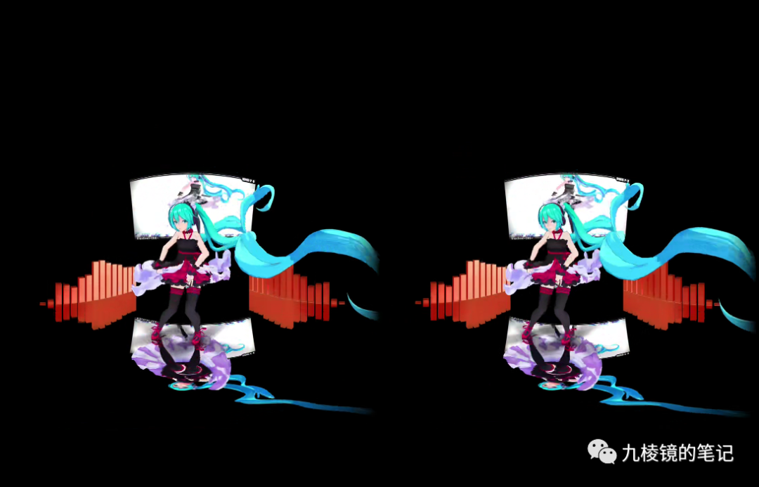因为矩形3d中偏振式左右的接纳程度和技术使用最多,并且现有的绝大部分视频都是扁矩形。180半景2D在二维屏幕上表现出来是个长宽比1:1的样子,180半景3D表现成了左右并列的样子。(没有矩形中的横向压缩畸变)结合对于180半景2D的分析,半景3D近乎完全保证了沉浸感的同时,将视频制作、传输、存储、播放的使用效率最大化。如果有人沉下心来做这种视频的作品,2-3年后绝对是顶流,但目前只有海外二次元MMD一个极小圈子在玩这东西。