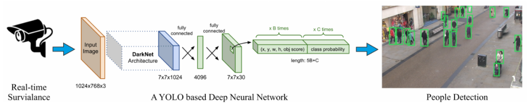 # 导入 Darknet 函数来执行对象检测from darknet2 import *# 载入 YOLOv4 架构network, class_names, class_colors = load_network("cfg/yolov4.cfg", "cfg/coco.data", "/openbayes/input/input0/DeepSocial.weights")width = network_width(network)height = network_height(network)# 在图像上运行 Darknet helper 函数def darknet_helper(img, width, height):darknet_image = make_image(width, height, 3)img_rgb = cv2.cvtColor(img, cv2.COLOR_BGR2RGB)img_resized = cv2.resize(img_rgb, (width, height),interpolation=cv2.INTER_LINEAR)# 获取图像比例,将边界框转换为适当的尺寸img_height, img_width, _ = img.shapewidth_ratio = img_width/widthheight_ratio = img_height/height# 运行 Darknet 模型copy_image_from_bytes(darknet_image, img_resized.tobytes())detections = detect_image(network, class_names, darknet_image)free_image(darknet_image)return detections, width_ratio, height_ratio