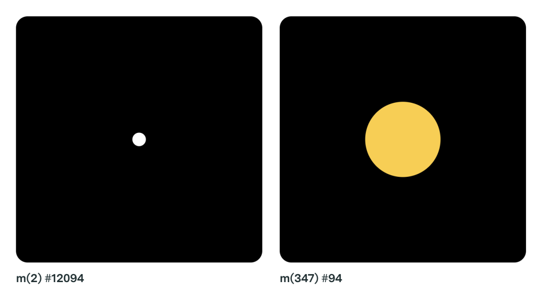 首先,很多人会问mass到底是啥?收藏者最初买入的NFT就是一个标注为m(1)的小点。当然小圆点本身会有多个不同的颜色。但不同于以往的NFT,收藏者通过同一个钱包买入多个mass代币后,代币会发生合并,所有的代币的Mass值累加,最终只保留单个代币。举个例子,我的钱包中有一个m(2)的mass代币,然后我再买入一个m(347)的代币,那么两个代币会合并,最终保留一个m(349)的代币。数字越大,NFT呈现的小圆点也越大。