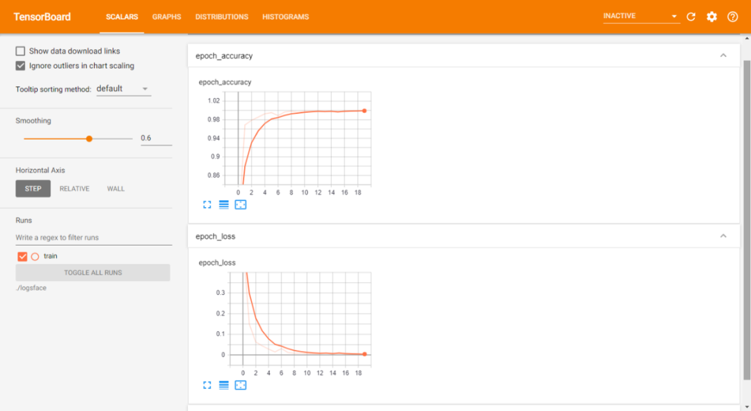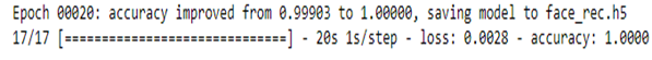 from tensorflow.keras.callbacks import ModelCheckpointfrom tensorflow.keras.callbacks import ReduceLROnPlateaufrom tensorflow.keras.callbacks import TensorBoardcheckpoint = ModelCheckpoint("face_rec.h5", monitor='accuracy', verbose=1,save_best_only=True, mode='auto', period=1)reduce = ReduceLROnPlateau(monitor='accuracy', factor=0.2, patience=3, min_lr=0.00001, verbose = 1)logdir='logsface'tensorboard_Visualization = TensorBoard(log_dir=logdir, histogram_freq=True)