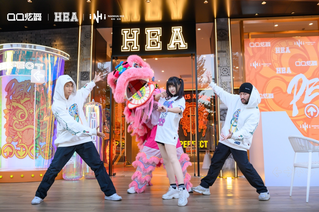 衣服的设计也经过了严格的考究,星瞳在联动中所穿的乃是《QQ炫舞》与广东本土潮牌HEA推出的联名潮服,衣服上融入了标志性的粤绣元素,贴近女性舞团的服饰设计不仅让星瞳在表演时游刃有余,同时也将醒狮强调的步法提现的淋漓尽致,动作规格与艺术表现皆创意十足。