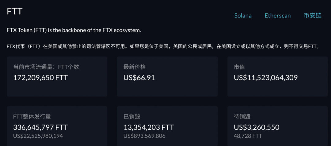 财务价值方面,FTX采用销毁FTT的通缩策略,销毁将持续到FTT市场流通总量减少至发行总量的50%为止。