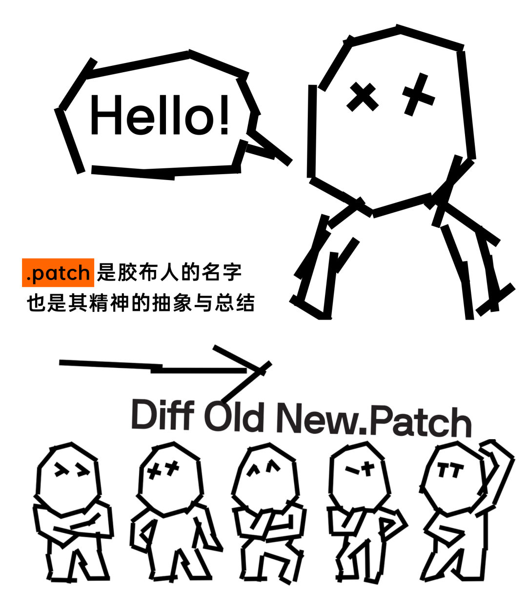 一座胶布人之岛:Patch!Patch!Patch!登上「如果岛」,你将随处可见一个IP 形象——胶布人。我们用简单、笨拙又滑稽的胶布线条,创造出一套符号体系,传递这样一种理念:人生,就是一场不断打补丁的旅程。新一代年轻人,是有能力不断自我更新和迭代的胶布人。在工程师的世界,.patch 是一个补丁文件,是 UNIX 系统里的一条命令行的产物:diff <变动前的文件> <变动后的文件>。如果把变动的文件比作成长中的人生,那么,「.patch」可以成为任何可能性的后缀,是成长的补丁包:创造力.patch、好奇心.patch、想象力.patch....